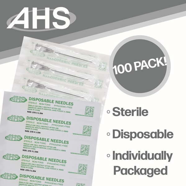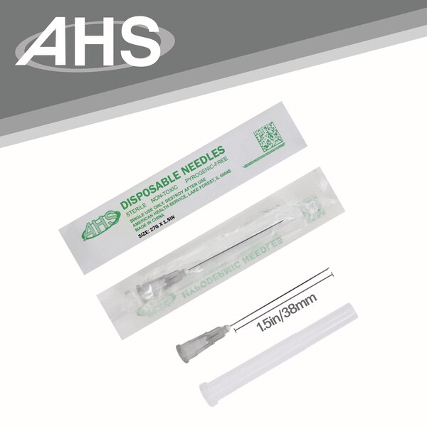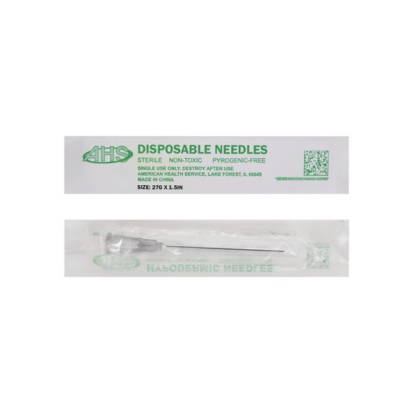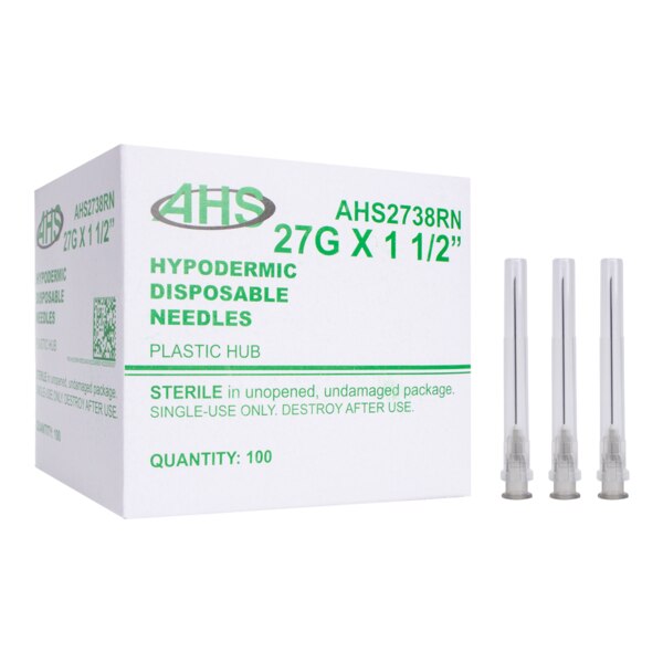 AHS Needle, 27G X 1.5", Hypodermic, 100/BX, AHS2738RN