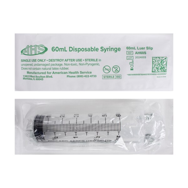 AHS Syringe, 60mL, Luer Slip, 1 each, AH60S