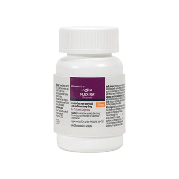 Flexira (firocoxib) Chewable Tablets are indicated for the control of pain and inflammation associated with osteoarthritis and for the control of postoperative pain and inflammation associated with soft-tissue and orthopedic surgery in dogs. BIOEQUIVALENT: FLEXIRA (firocoxib) Chewable Tablets are bioequivalent to Previcox (firocoxib) Chewable Tablets and deliver equivalent absorption and depletion for effective pain relief.* Previcox is a registered trademark of Boehringer Ingelheim Animal Health USA Inc. Pivetal Flexira (firocoxib) Chewable Tablets are not manufactured or distributed by Boehringer Ingelheim Animal Health USA Inc.