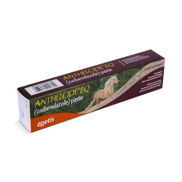 A broad-spectrum equine dewormer containing the active ingredient oxibendazole. Antheclide® EQ paste is approved for the removal and control of large strongyles (Strongylus edentatus, S. equinus, S. vulgaris); small strongyles (species of the genera Cylicostephanus, Cylicocyclus, Cyathostomum, Triodontophorus, Cylicodontophorus, and Gyalocephalus); large roundworms (Parascaris equorum); pinworms (Oxyuris equi), including various larval stages and threadworms (Strongyloides westeri).